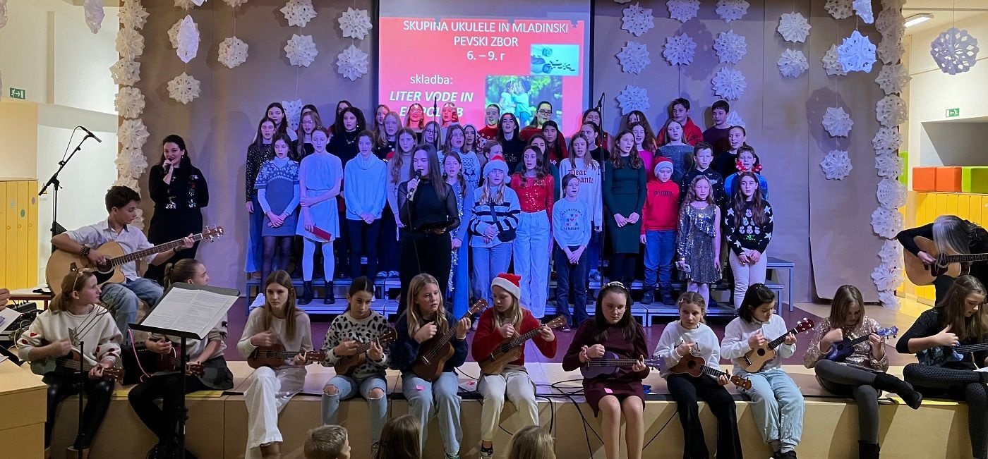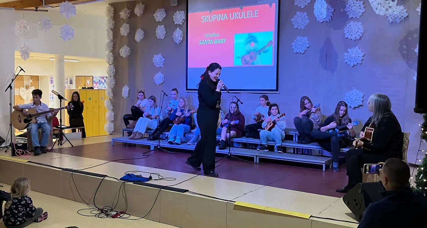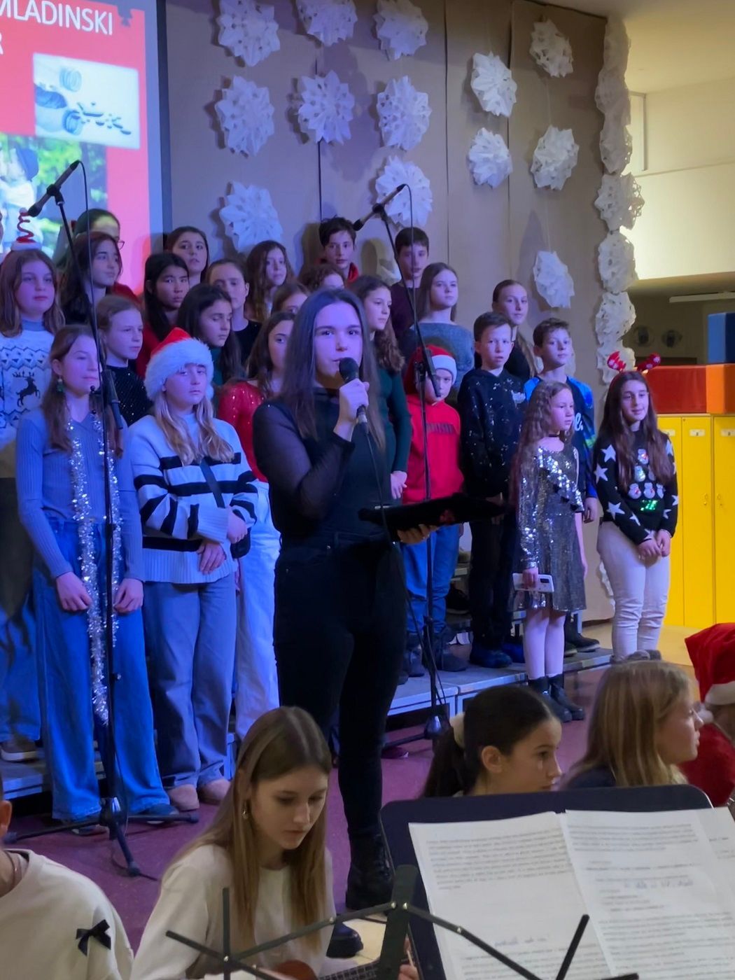 Dragi prijatelji, sošolci, učitelji, mamice, očiji, babice, dedki, tete in strici ter sestrične in bratranci! Ker že vse diši po decembru, bi vam radi nekaj podarili. Nekaj, kar smo naredili čisto sami. Saj veste, mi prisegamo na skupnost in sodelovanje, hkrati pa ne maramo ravno zgodb v slogu Black Friday, pa visoko letečih gesel in fraz. Zato vam podarjamo en čisto pristen Božični komad. Glasbo in besedilo je napisala naša Ana Ravnik. Prav ponosni smo, da smo lahko del njene družbe. Igrala je tudi klavir. Peti ji je pomagala Sofia Gaser, ki je ravno tako neprekosljiva glasbenica. Pri vokalih je pomagala tudi Vida. Na basu se je izkazala Sara Furlan (Božičkovo kapo dol za samostojno pogruntano bas linijo). Meri se je delala, da zna igrati kitaro. Požrtvovalni snemalki sta bili Neža Pirnar in Lina Pavič, polni izvirnih zamisli in fizično neutrudljivi. A celotna zgodba bi bila popolnoma neučinkovita, če v naši družbi ne bi bilo edinega predstavnika moškega spola Naia Merharja. Naš NAIjači Nai, tako mu ljubkovalno rečemo, ker vemo, da je virtuoz na kompu in vsemu, kar ima tam naloženega in česar navadni smrtniki ne razumemo. Ne bomo vam razlagali v kakšnih razmerah je nastal video, ki vam ga podarjamo. Žal si nismo mogli privoščiti fancy studia in opreme, tudi kamer ne, smo bili pa bogato opremljeni z ustvarjalnostjo, voljo, pogumom, kančkom drznosti in predvsem z vero v skupni cilj. Trdo smo delali, »špricali« sobotna domača opravila, jedli pizzo, ustvarjali in se pri tem neizmerno zabavali. Naša božična želja je, da kanček tega vzdušja skozi ta video prenesemo tudi na vas. Poslušajte nas, strokovnjaki pravijo, da je Božični komad »catchy«. Vaši: Ana, Sofia, Sara, Lina, Neža, Nai Mentorici: Vida Vincek & Marija Vincek