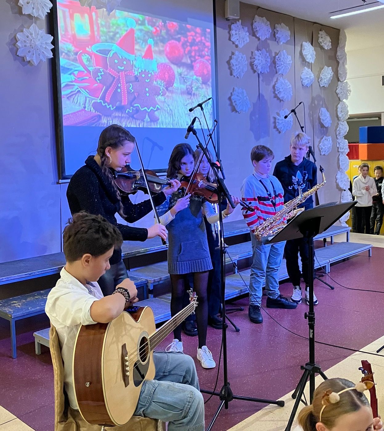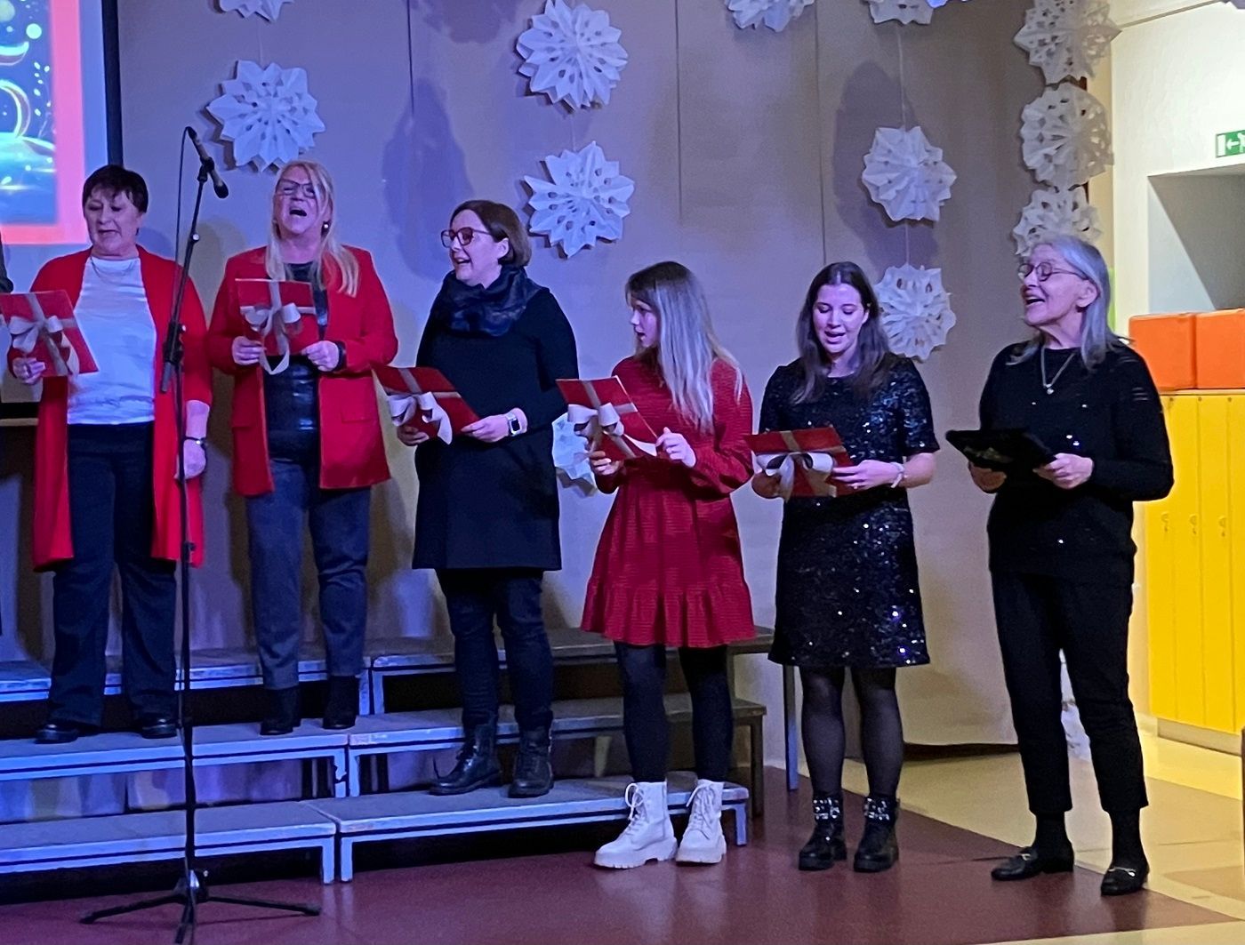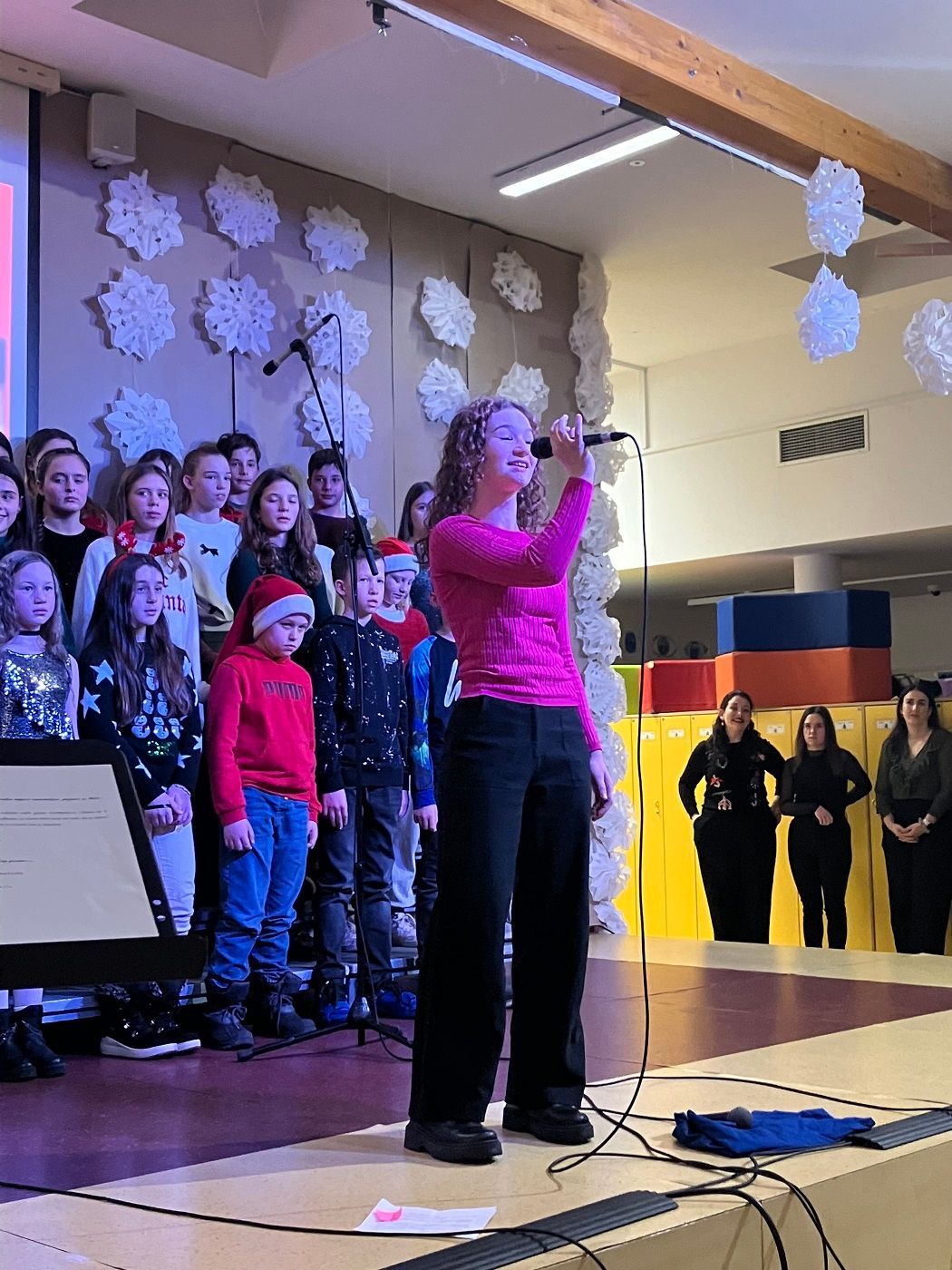 Dragi prijatelji, sošolci, učitelji, mamice, očiji, babice, dedki, tete in strici ter sestrične in bratranci! Ker že vse diši po decembru, bi vam radi nekaj podarili. Nekaj, kar smo naredili čisto sami. Saj veste, mi prisegamo na skupnost in sodelovanje, hkrati pa ne maramo ravno zgodb v slogu Black Friday, pa visoko letečih gesel in fraz. Zato vam podarjamo en čisto pristen Božični komad. Glasbo in besedilo je napisala naša Ana Ravnik. Prav ponosni smo, da smo lahko del njene družbe. Igrala je tudi klavir. Peti ji je pomagala Sofia Gaser, ki je ravno tako neprekosljiva glasbenica. Pri vokalih je pomagala tudi Vida. Na basu se je izkazala Sara Furlan (Božičkovo kapo dol za samostojno pogruntano bas linijo). Meri se je delala, da zna igrati kitaro. Požrtvovalni snemalki sta bili Neža Pirnar in Lina Pavič, polni izvirnih zamisli in fizično neutrudljivi. A celotna zgodba bi bila popolnoma neučinkovita, če v naši družbi ne bi bilo edinega predstavnika moškega spola Naia Merharja. Naš NAIjači Nai, tako mu ljubkovalno rečemo, ker vemo, da je virtuoz na kompu in vsemu, kar ima tam naloženega in česar navadni smrtniki ne razumemo. Ne bomo vam razlagali v kakšnih razmerah je nastal video, ki vam ga podarjamo. Žal si nismo mogli privoščiti fancy studia in opreme, tudi kamer ne, smo bili pa bogato opremljeni z ustvarjalnostjo, voljo, pogumom, kančkom drznosti in predvsem z vero v skupni cilj. Trdo smo delali, »špricali« sobotna domača opravila, jedli pizzo, ustvarjali in se pri tem neizmerno zabavali. Naša božična želja je, da kanček tega vzdušja skozi ta video prenesemo tudi na vas. Poslušajte nas, strokovnjaki pravijo, da je Božični komad »catchy«. Vaši: Ana, Sofia, Sara, Lina, Neža, Nai Mentorici: Vida Vincek & Marija Vincek