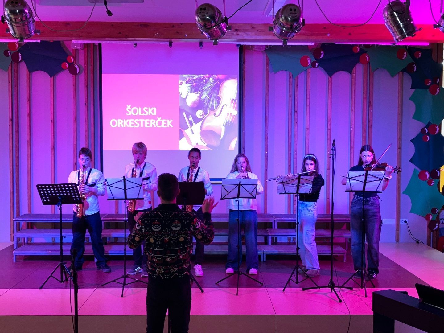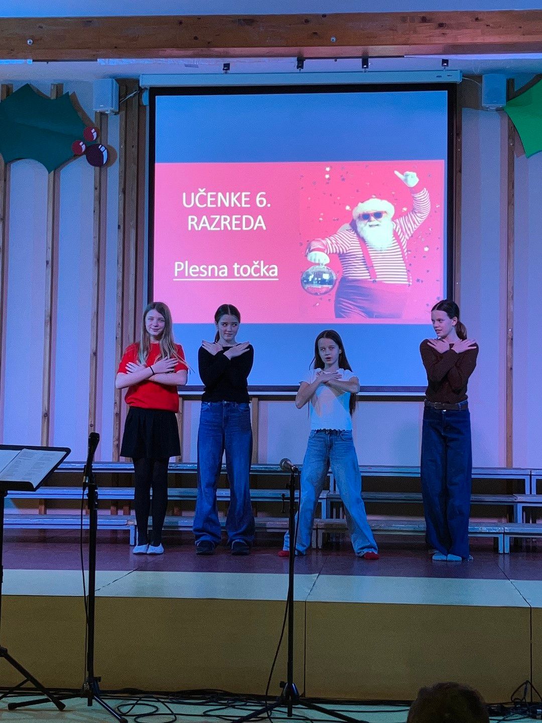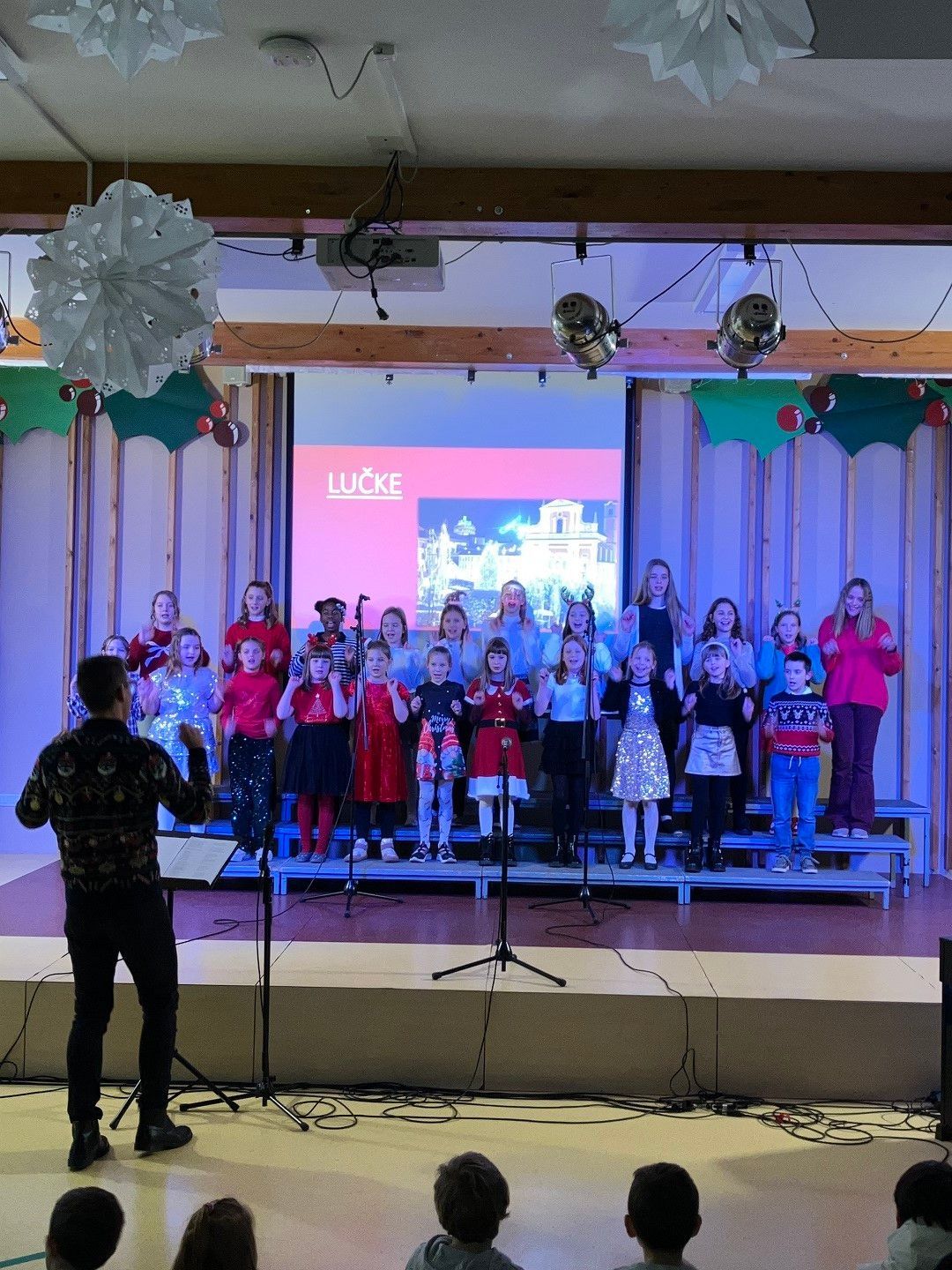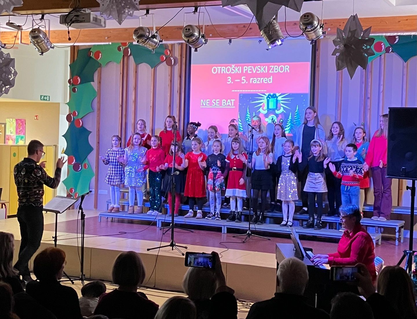 Dragi prijatelji, sošolci, učitelji, mamice, očiji, babice, dedki, tete in strici ter sestrične in bratranci! Ker že vse diši po decembru, bi vam radi nekaj podarili. Nekaj, kar smo naredili čisto sami. Saj veste, mi prisegamo na skupnost in sodelovanje, hkrati pa ne maramo ravno zgodb v slogu Black Friday, pa visoko letečih gesel in fraz. Zato vam podarjamo en čisto pristen Božični komad. Glasbo in besedilo je napisala naša Ana Ravnik. Prav ponosni smo, da smo lahko del njene družbe. Igrala je tudi klavir. Peti ji je pomagala Sofia Gaser, ki je ravno tako neprekosljiva glasbenica. Pri vokalih je pomagala tudi Vida. Na basu se je izkazala Sara Furlan (Božičkovo kapo dol za samostojno pogruntano bas linijo). Meri se je delala, da zna igrati kitaro. Požrtvovalni snemalki sta bili Neža Pirnar in Lina Pavič, polni izvirnih zamisli in fizično neutrudljivi. A celotna zgodba bi bila popolnoma neučinkovita, če v naši družbi ne bi bilo edinega predstavnika moškega spola Naia Merharja. Naš NAIjači Nai, tako mu ljubkovalno rečemo, ker vemo, da je virtuoz na kompu in vsemu, kar ima tam naloženega in česar navadni smrtniki ne razumemo. Ne bomo vam razlagali v kakšnih razmerah je nastal video, ki vam ga podarjamo. Žal si nismo mogli privoščiti fancy studia in opreme, tudi kamer ne, smo bili pa bogato opremljeni z ustvarjalnostjo, voljo, pogumom, kančkom drznosti in predvsem z vero v skupni cilj. Trdo smo delali, »špricali« sobotna domača opravila, jedli pizzo, ustvarjali in se pri tem neizmerno zabavali. Naša božična želja je, da kanček tega vzdušja skozi ta video prenesemo tudi na vas. Poslušajte nas, strokovnjaki pravijo, da je Božični komad »catchy«. Vaši: Ana, Sofia, Sara, Lina, Neža, Nai Mentorici: Vida Vincek & Marija Vincek