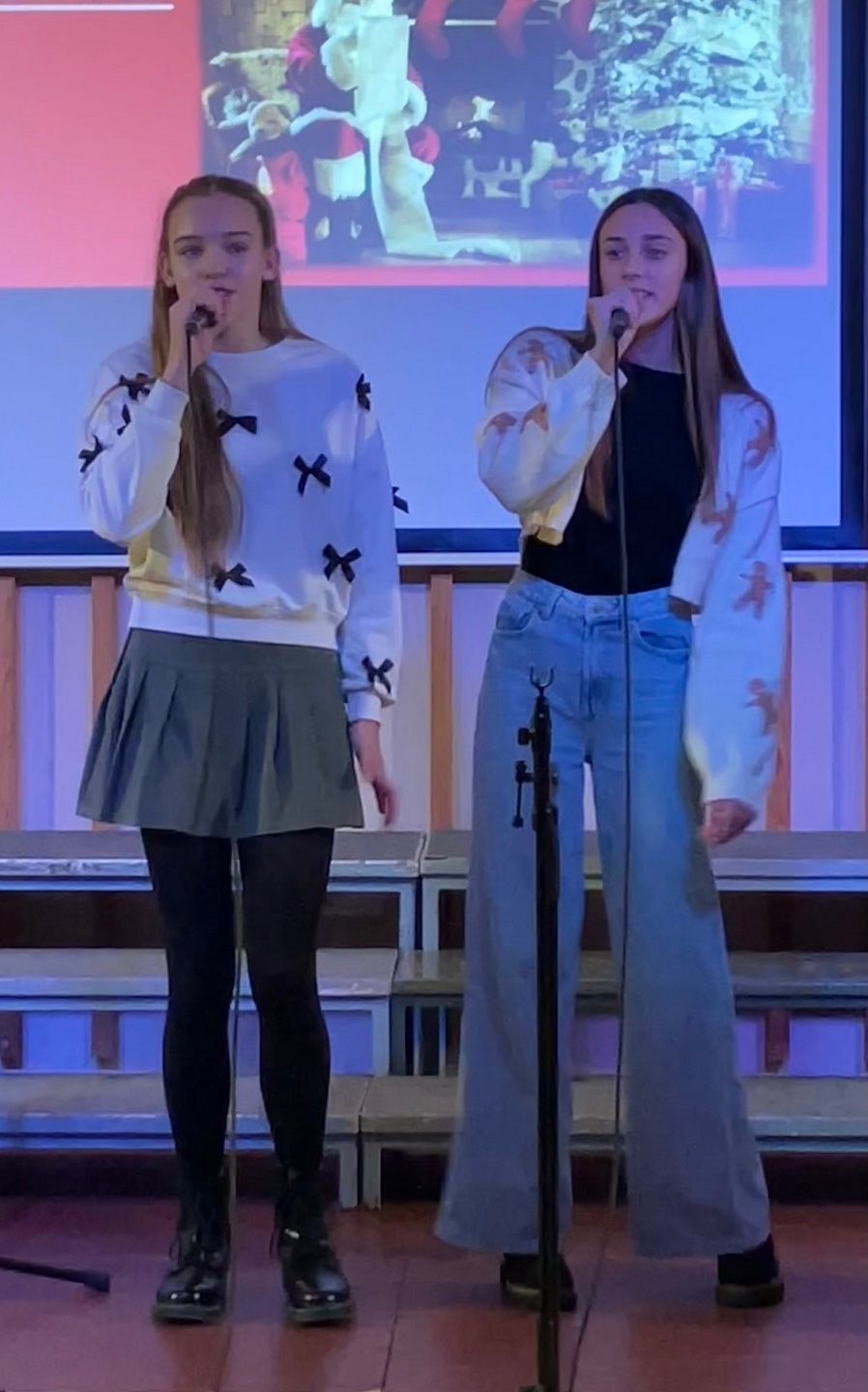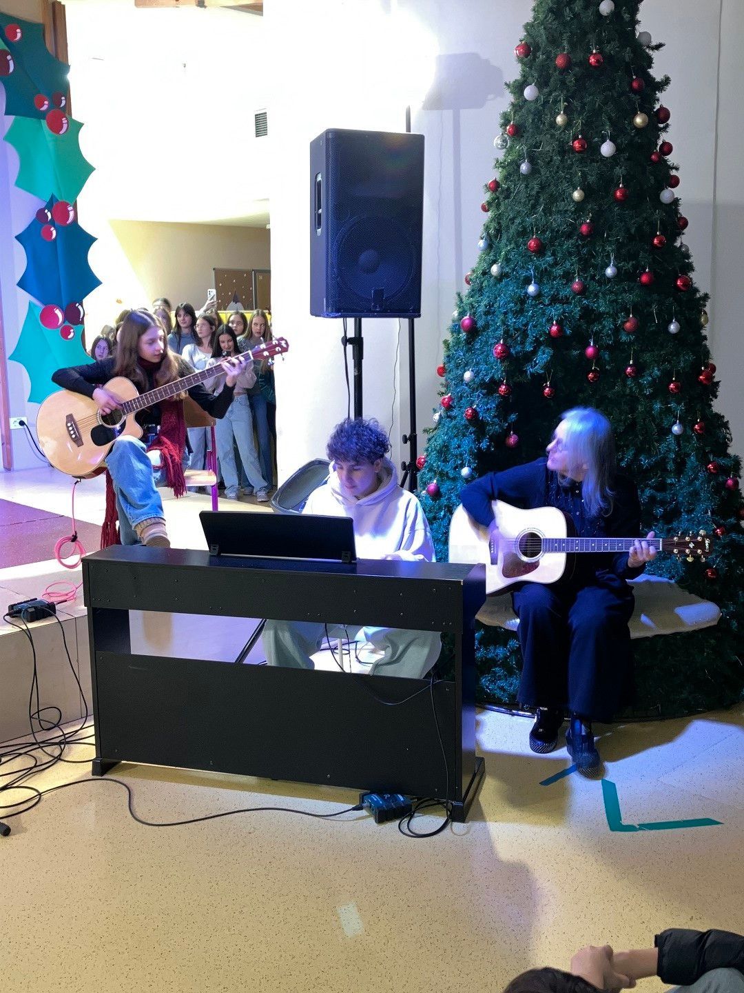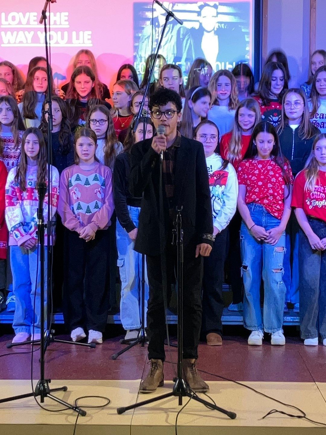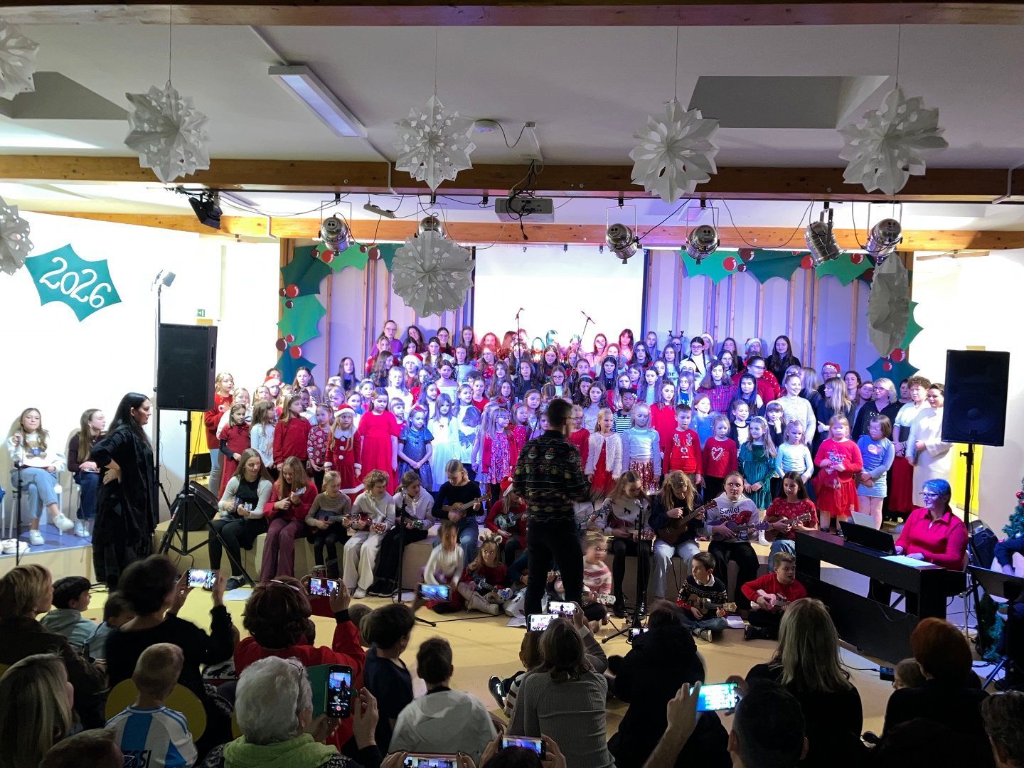Dragi prijatelji, sošolci, učitelji, mamice, očiji, babice, dedki, tete in strici ter sestrične in bratranci! Ker že vse diši po decembru, bi vam radi nekaj podarili. Nekaj, kar smo naredili čisto sami. Saj veste, mi prisegamo na skupnost in sodelovanje, hkrati pa ne maramo ravno zgodb v slogu Black Friday, pa visoko letečih gesel in fraz. Zato vam podarjamo en čisto pristen Božični komad. Glasbo in besedilo je napisala naša Ana Ravnik. Prav ponosni smo, da smo lahko del njene družbe. Igrala je tudi klavir. Peti ji je pomagala Sofia Gaser, ki je ravno tako neprekosljiva glasbenica. Pri vokalih je pomagala tudi Vida. Na basu se je izkazala Sara Furlan (Božičkovo kapo dol za samostojno pogruntano bas linijo). Meri se je delala, da zna igrati kitaro. Požrtvovalni snemalki sta bili Neža Pirnar in Lina Pavič, polni izvirnih zamisli in fizično neutrudljivi. A celotna zgodba bi bila popolnoma neučinkovita, če v naši družbi ne bi bilo edinega predstavnika moškega spola Naia Merharja. Naš NAIjači Nai, tako mu ljubkovalno rečemo, ker vemo, da je virtuoz na kompu in vsemu, kar ima tam naloženega in česar navadni smrtniki ne razumemo. Ne bomo vam razlagali v kakšnih razmerah je nastal video, ki vam ga podarjamo. Žal si nismo mogli privoščiti fancy studia in opreme, tudi kamer ne, smo bili pa bogato opremljeni z ustvarjalnostjo, voljo, pogumom, kančkom drznosti in predvsem z vero v skupni cilj. Trdo smo delali, »špricali« sobotna domača opravila, jedli pizzo, ustvarjali in se pri tem neizmerno zabavali. Naša božična želja je, da kanček tega vzdušja skozi ta video prenesemo tudi na vas. Poslušajte nas, strokovnjaki pravijo, da je Božični komad »catchy«. Vaši: Ana, Sofia, Sara, Lina, Neža, Nai Mentorici: Vida Vincek & Marija Vincek